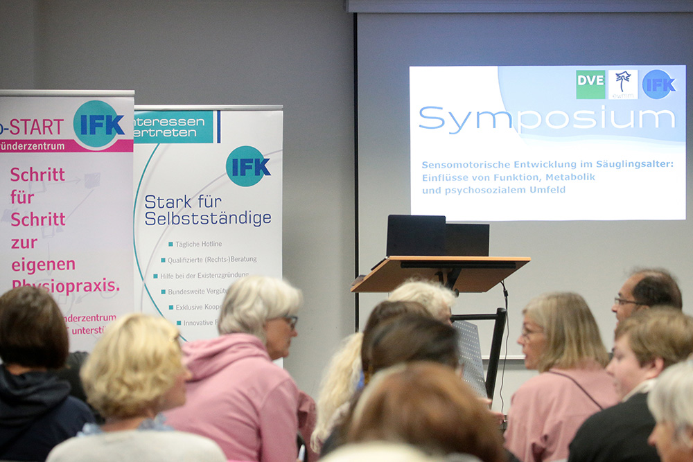 Mit den Einflüssen von Funktion, Metabolik und psychosozialem Umfeld auf die Entwicklung von Kleinkindern beschäftigten sich Anfang Oktober die rund 65 Teilnehmer des Symposiums „Sensomotorische Entwicklung im Säuglingsalter“, das der IFK zusammen mit dem Deutschen Verband Ergotherapie (DVE) und dem Manualmediziner Dr. Heiner Biedermann durchgeführt hatte. Vor einem heterogenen Publikum aus Ergotherapeuten, Physiotherapeuten und Ärzten referierten Fachleute aus Medizin und Therapie über unterschiedliche Blickwinkel auf die Entwicklung von Säuglingen. Dr. Heiner Biedermann eröffnete das Symposium, begrüßte die Anwesenden und führte durch den Tag.