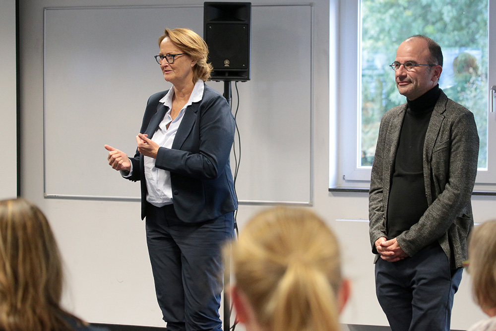 Nach einer Mittagspause und einem angeregten Austausch zwischen den Teilnehmenden der verschiedenen Berufsgruppen, aber auch mit den Referenten hatte Dr. Biedermann einen Überraschungsgast in petto. Prof. Dr. Onur Güntürkün ist Biopsychologe und forscht darüber, wie mentale Funktionen von Neuronen erzeugt werden können. Dazu kombiniert er die Analyse auf Ebene von Neuronen mit den Erkenntnissen aus kognitiven Experimenten mit menschlichen Probanden.