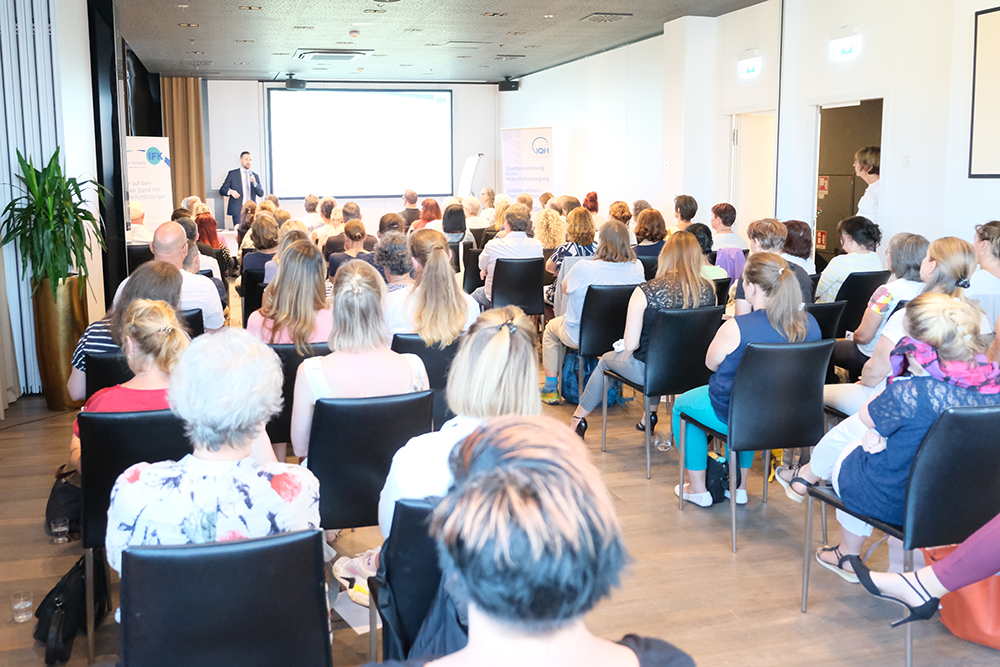 Nach dem berufspolitischen Update hielt Dr. Michael Heinen, Geschäftsführer des Instituts für Qualitätssicherung in der Heilmittelversorgung (IQH) und Referatsleiter Wirtschaft und Kassenverhandlungen beim IFK, ein Fachvortrag zum Thema Qualitätsmanagement. Das IQH bietet einen umfassenden Ansatz, zahlreiche Maßnahmen zur Qualitätssicherung in physiotherapeutischen Praxen systematisch zu bearbeiten.