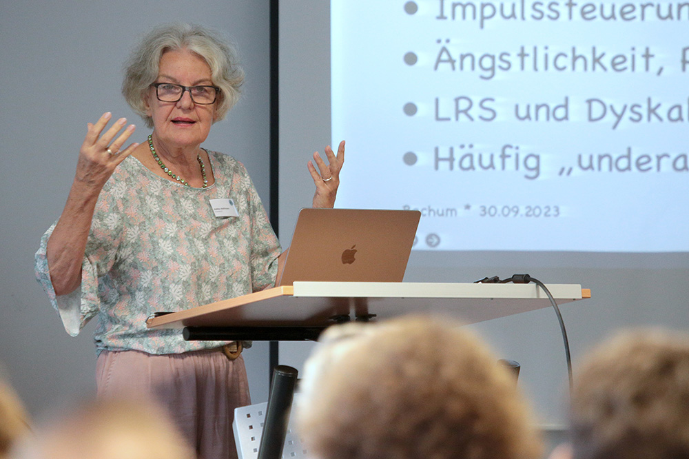 Im ersten Vortrag des Tages sprach die Kinderärztin Editha Halfmann über die Probleme von Schulkindern aus der kinderärztlichen Sicht. Häufig würden Eltern beruhigt, dass sich Beschwerden von Kindern „zurechtwachsen“. „Dieses ‚Zurechtwachsen‘ bedeutet, dass die Kinder größere Anstrengungen aufbringen müssten, um Defizite zu kompensieren“, betonte Halfmann. Sie nahm in ihrem Vortrag auch Bezug auf die Schwangerschafts-, Geburts- und Familienanamnese, durch die Kinderärzte wichtige Informationen für die Diagnostik und Behandlung ihrer kleinen Patienten erhalten könnten.