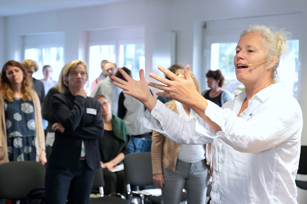 „Wie wirken sich Schulprobleme auf die eigenen Ressourcen aus?“, fragte die Diplom-Sportlehrerin Sandra Seckler nach der ersten Kaffeepause. Ihr sei es ein besonderes Anliegen, Spaß an Bewegung zu vermitteln, sagte Seckler. Schulprobleme seien oft bedingt durch den immer größeren psychischen Leistungsdruck, erklärte Seckler. Daher sei auch eine ganzheitliche Betrachtung von Symptomen, wie beispielsweise Rückenschmerzen wichtig. Als wesentliche Fähigkeit, um aus den eigenen Ressourcen schöpfen zu können, empfiehlt sie Stressbewältigungskompetenz.