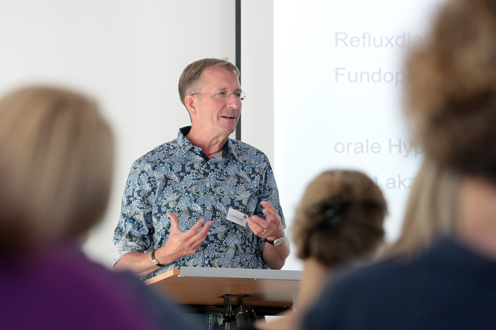 Den letzten Vortragsblock des Tages füllte Dr. Heiner Biedermann. „Warum brauchen wir überhaupt Sensorik?“, fragte er und beantwortete dies gleich: „Um auf unsere Umwelt zu reagieren. Motorik ist die Basis jeglicher Sensorik.“ Er verwies auch auf die Unterschiede in der Behandlung durch Physiotherapie, manualtherapeutische und manualmedizinische Ansätze. Eins haben allerdings alle gemeinsam, so Biedermann: „Bewegung ist die Basis der Reizaufnahme und -verarbeitung.“