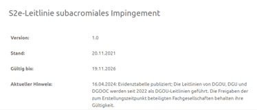 Abbildung 2: Darstellung Leitlinie S2e-Subacromiales Impingement im AWMF-Register