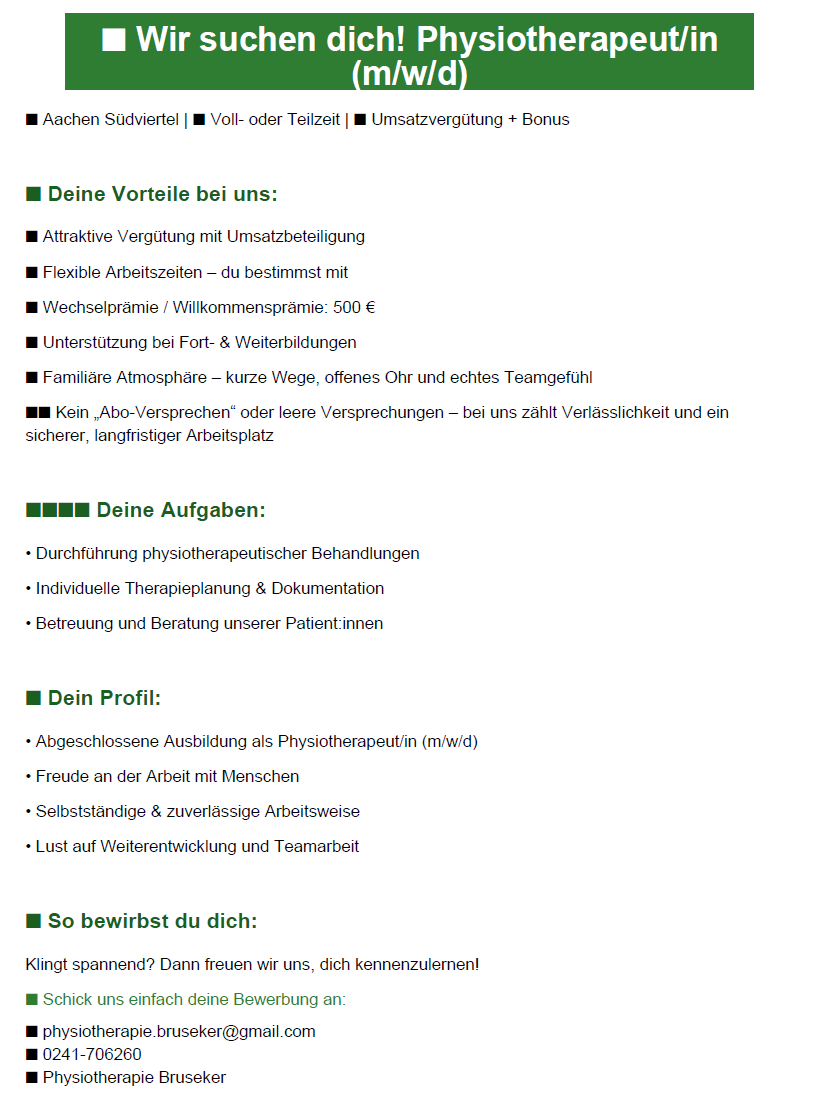 Wir suchen dich! Physiotherapeut/in (m/w/d)